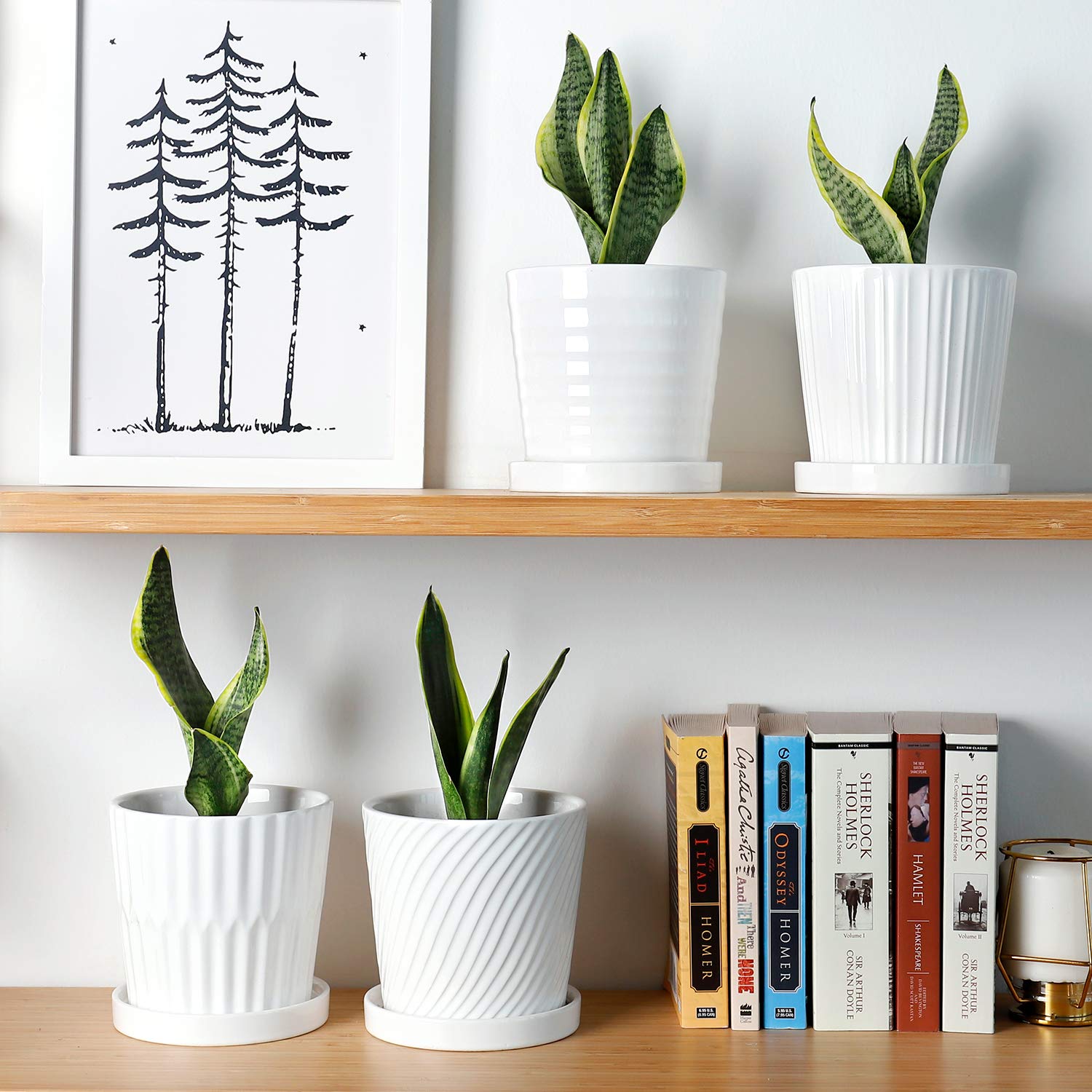 Amazon Com Greenaholics Ceramic Plant Pots Indoor 5 1 Inch White Flower Planters With Drainage Holes And Connected Saucers For Succulent Or Small Snake Plant Set Of 4 Patio Lawn Garden
